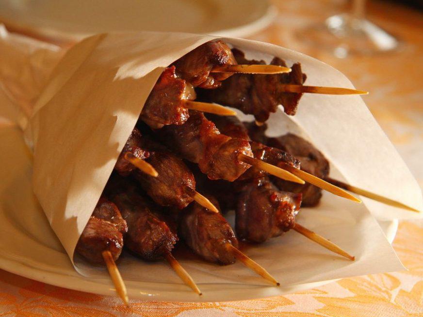 GLI ARROSTICINI DI PECORA NASCONO NEL PIENO DELLA TRANSUMANZA COME METODO DI CONSERVAZIONE, OTTIMIZAZZIONE DEL PRODOTTO E EVITARE SPRECHI. DAI PASTORI DI VILLA CELLERA E CIVITELLA CASANOVA (ENTROTERRA SUD ORIENTALE DEL GRAN SASSO AL CONFINE TRA LE PROVINCE DI L'AQUILA, PESCARA E TERAMO) INTORNO AGLI ANNI 30 DEL '900. AD OGGI È IL PRODOTTO PRINCIPE DELLA NOSTRA REGIONE E PER REALIZZARLO UTILIZZIAMO LE MIGLIORI PARTI DELLA PECORA E LE MIGLIORI QUALITA' DI PECORE.